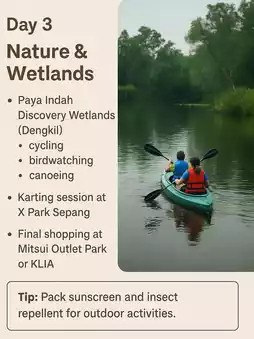 Morning at Paya Indah Discovery Wetlands (Dengkil): cycling, canoeing, birdwatching.