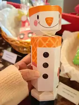 Picture a big, vibrant red bus decked out with Christmas ornaments, surrounded by delicious holiday treats for sale.