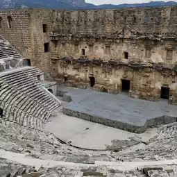 Aspendos Theatre, located near Serik in the Antalya Province of Turkey, is one of the best-preserved Roman theatres in the world. Built in the 2nd century AD during the reign of Emperor Marcus Aurelius, it is renowned for its remarkable acoustics, impressive stage architecture, and historical significance as a center of entertainment in ancient Pamphylia.