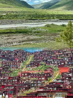 The world's largest Tibetan Buddhist academy! Thousands of red houses blanket the valley, with chanting and juniper smoke enveloping the mountains 🙏