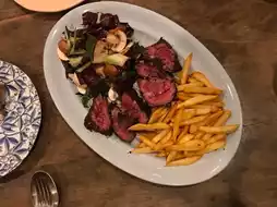 The name of the restaurant is said to come from the French (slang) meaning "beef drink horse food," which expresses eating and drinking a lot.