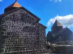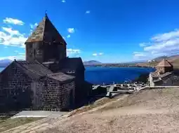 The twin stone churches — Surb Arakelots (Holy Apostles) and Surb Astvatsatsin (Holy Mother of God) — rise modestly yet majestically, their dark tufa walls glowing warmly under the sun. From the top of the hill, you’ll find one of the most spectacular panoramic views in Armenia — endless lake, sky, and silence blending into eternity.