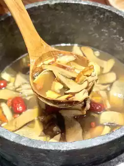 The broth is simmered for 3 hours with over 10 kinds of highland wild mushrooms and a 300-day-old hen 🐔