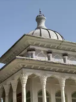 ✅The mausoleum is 22 meters high. It is built on a square base that is 2 meters high, 10 meters wide and 10 meters long. The top of the mausoleum is in the shape of a round tower. The names of the twelve sets of "Mukham" are inlaid on the walls of the mausoleum palace.