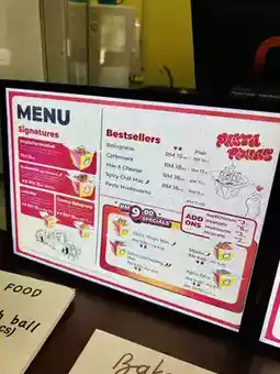 We ordered Creamy Bolognese, Salted Egg Pasta and Hot Dog. The dishes served are delicious. They have many choice of pasta. Cozy and comfortable environment. Nice place to dine in. Suitable for family because they provide kids area. The price acceptable with portion. Note to all, this place only used cashless system. Make sure you have e-wallet or card to make your payment.