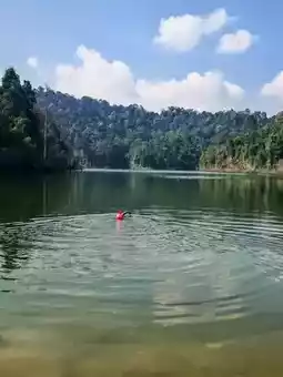 The area is surrounded by lush trees and gentle walking paths, making it ideal for a morning stroll, a quiet picnic, or just sitting by the water to soak in the calm. If you’re lucky, you might spot birds gliding over the lake or watch the ripples as fish swim beneath.