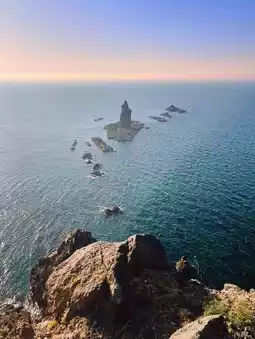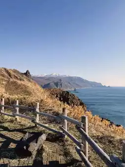 Embark on a self-driving tour in Hokkaido, starting from Otaru and passing through Yoichi before arriving at the Shakotan Peninsula. The destination, "Cape Kamui," is a prominent cape extending into the deep blue Sea of Japan.