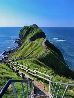 Cape Kamui, located at the westernmost tip of the Shakotan Peninsula in Hokkaido, is a place of intimate connection with the sea. Standing on the cape, the ocean breeze greets you, the blue water laps against the rocky shore, creating a shimmering spray. The distant horizon merges with the horizon, creating a world of dialogue between the sea and the sky.
