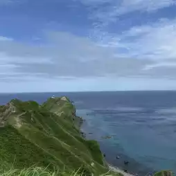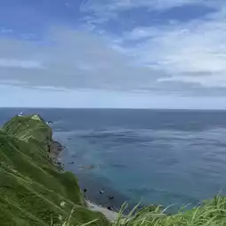 Slowly ascending the wooden plank path, the first half offers golden grasslands and rolling hills, while the second half offers sheer cliffs and a boundless ocean view. Every step feels like walking between heaven and earth: to your left is the surging sea, to your right is the rolling mountain ridge, overhead is the azure sky, and beneath your feet is the path to Kamui Rock. The trail is flat and easy, but the wind can be strong, so exercise caution.