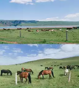 • Features: Vast grasslands, herds of fine horses, magnificent scenery of snow-capped mountains and lakes, summer rapeseed flower sea (July-August), golden pasture in autumn (September-October).