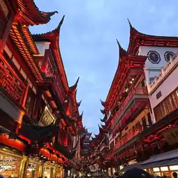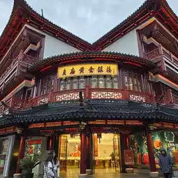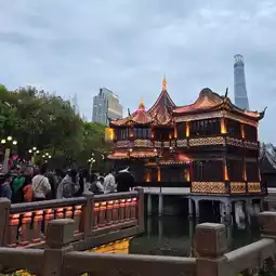Yuyuan Garden, an ancient Chinese garden and traditional market in downtown Shanghai, is beautifully lit up at night. There are many souvenir shops and restaurants, including a Michelin-starred Xiaolongbao restaurant, which was incredibly crowded, so we didn't get to try it.