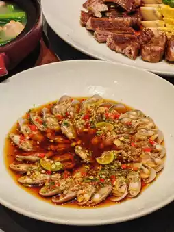 Cooked and marinated clams Fresh clams are soaked in a special sauce, which is fresh and intoxicating with a hint of sweetness.