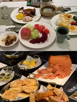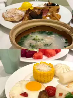 The hotel offers a wide variety of breakfast options, combining Chinese and Western cuisine, including buns, wontons, noodles, fried rice, oatmeal, stir-fried vegetables, bread, fruit, salad, and more. There are many types of bread, and they look tempting. Although the taste is not outstanding, it is enough to meet the demand. The service staff is warm and attentive. If you go late, the waiter will kindly remind you that the food is about to be taken away and suggest you take more food. You can enjoy the buffet to your heart's content, and there are many drinks available for unlimited consumption.