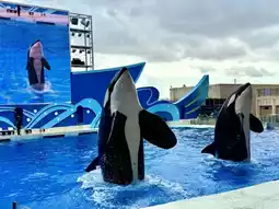 🐳 Killer Whale Legend If you want to be immersed, sit in the front. You will be blessed by the killer whale baby splashing water. If you don't like water, avoid the first 8 rows of splashing water. It's 20 minutes. You must see it when you come to Shanghai Haichang Ocean Park. The overlord of the ocean is so handsome. It's shocking that five killer whales rushed to the beach together