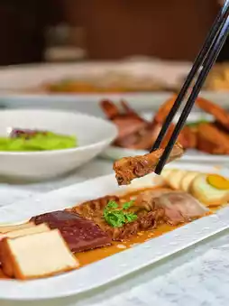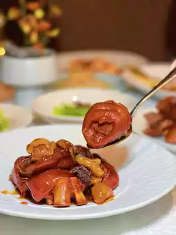 A very creative dish that combines tradition and innovation. The sauce is rich, the pork knuckle is tender and not dry, and the addition of water chestnuts and plums not only enriches the taste but also brings a hint of freshness.