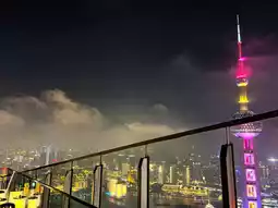 The best place to see the Oriental Pearl Tower~~"Flair Rooftop Bar" on the 58th floor to see the Oriental Pearl Tower up close