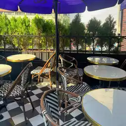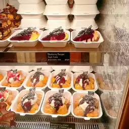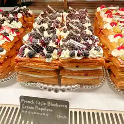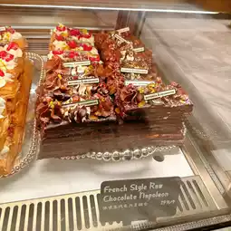 The shop is beautifully decorated, giving it a French atmosphere. The crystal lamps in the hall are sparkling beautifully. The shop has 2 floors. There is an outdoor area on the top floor for sitting and eating.