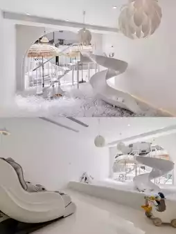 This is a three-story white Mickey Mouse castle, more fairytale-like than Disneyland! As soon as you enter, you'll see an Instagram-style slide, a two-meter-tall Mickey Mouse doll, and a huge starry sky infinity pool 😍! It's a dream come true for girls, and every photo is a masterpiece 🎀.