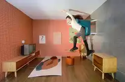 The sofa, coffee table, and TV are all on the ceiling! Lie on the floor and strike a "Ge You" pose, and it'll look like you're lying on the ceiling! The effect is amazing!