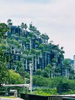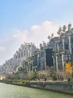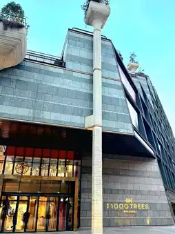 Tian An 100 Trees is a luxury brand shopping mall with many shops and restaurants designed by a British designer. The concept of the project is to transform a tall building in Shanghai into a mountain covered with green forests with 1,000 trees on the building.