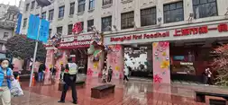 ==> West Nanjing Road, which directly leads into the city's bustling commercial districts.