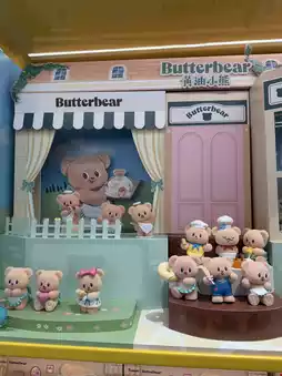 This is a group box store. There are many surprise boxes to choose from. The store is very big and has many floors. There are also a lot of products. Today, we bought a butter bear surprise box for 69 yuan. There are many types. The store doesn't only have surprise boxes. There are also models, building blocks, and many more. If you go to Shanghai, I recommend you to try it. There are a lot of products.