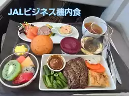 On the way back, I flew on a JAL business flight from Hongqiao Airport ✈ The steak was surprisingly tender and delicious