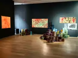 Yanwu Gallery, Powerlong Art Center, presents an exhibition of works by artists Li Yanxun, Wang Shuzhong, and Yang Yong, titled "Ambiance." The exhibits include cloisonné, ink on silk, colored silk, paper, mixed media, and acrylic oil paintings.