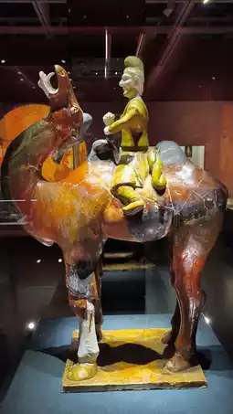 Reliefs of the Six Steeds of Zhaoling are displayed at the entrance of the exhibition. The Six Steeds of Zhaoling were the six warhorses of Li Shimin, who died in several key battles. Li Shimin personally wrote "praises" for them and had their images carved in bluestone to commemorate those turbulent years and demonstrate his ambition and determination to create the Zhenguan era.