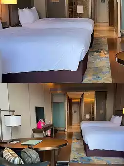 Step inside, and you'll be captivated by the hotel's unique design. The fusion of modern and traditional elements exudes elegance and sophistication in every detail.🖼️ The guest rooms are spacious and bright, with floor-to-ceiling windows framing lush greenery, creating a living masterpiece.🖼️
