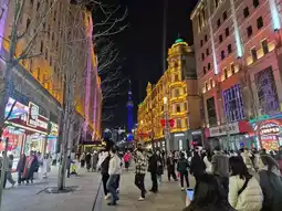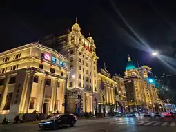 Shanghai’s iconic night view. The front shows the night view of East Nanjing Road, and behind are European-style buildings beautifully lit up.