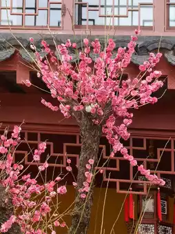 The yellow-walled corridor surrounds the courtyard, making these three plum trees appear even more slender. The red flowers on the branches gently tremble in the breeze. Tripods have already been set up under the corridor, and several photography enthusiasts are focused on adjusting their angles. The shutter sounds rise and fall, as if keeping rhythm for this spring solo performance.