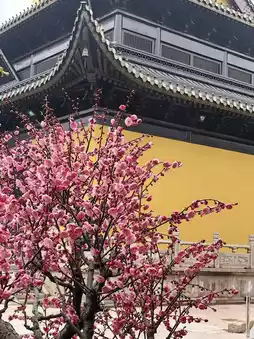 Yongfu An is hidden beside Shanghai University. If it weren’t for a special trip to seek plum blossoms, I probably wouldn’t have come here. The gate of the temple is small, with a small bridge, flowing water, and vegetable fields coexisting, slightly messy, which instead gives a sense of warmth. By the pond next to the first-floor wing room, there are three plum trees, their slender branches supporting a scene of elegance.
