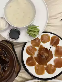 The meal started with four beautifully plated appetizers: the smoked fish had an incredibly crispy outer layer with perfectly balanced sauce, the salted chicken was packed with flavor, the jellyfish head was super crunchy and refreshing, and the dish was garnished with cucumber for an extra touch. There was also tofu skin stuffed with mushrooms and carrots—light and delicious!