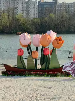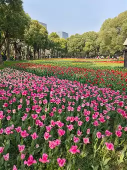 📸 Filmed on 3/20/2025!! Live report from Daning Park tulips: 60% of the tulips have bloomed, and the peak bloom is expected this weekend. Daning Park is truly the only park in Shanghai named after tulips. With four large tulip areas, a sea of flowers, and a wide variety of species planted in different zones, the most vibrant tulips are definitely at Roman Square. Large patches of tulips combined with windmills and cow installations give a feeling of being in the Netherlands. The air here even smells sweetly of flowers, lifting your spirits 🌷🌷
