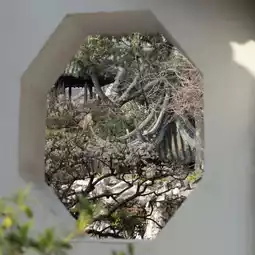 •Elaborately decorated stone garden, pond, bridge pier, and traditional architecture
