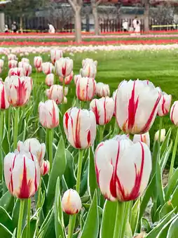 First, let me share some check-in tips. The plum blossoms have already passed their peak, which is a bit of a pity. But right now is the peak blooming season for tulips, with large swaths of tulips in various colors intertwined. When the sunlight shines down, any photo you take is full of poetic charm. Although the yellow tulips have passed their most brilliant time, other colors are still blooming continuously, so it’s totally fine to check in now.