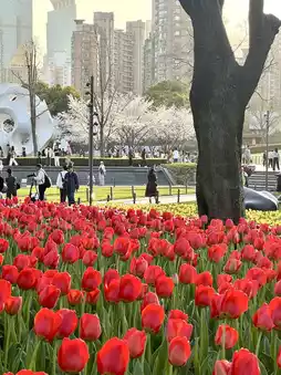 Who can resist free fields of tulips and cherry blossoms! Just thinking about it feels amazing! This hidden gem is Jing’an Sculpture Park, free admission, open 24 hours a day, so friendly!