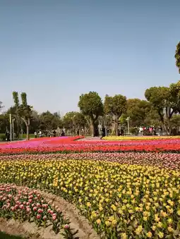 Another leisure spot in Shanghai, Daning Park is mostly visited by Chinese families who come to picnic by the water. The place is beautiful with a great atmosphere. As you walk in, you'll find fields of tulips in various colors, very beautiful. Unfortunately, when I visited, only a few cherry blossoms were blooming. There are plum blossoms inside and many kinds of flowers. Every corner is a great photo spot. There are costumes available for rent to change into for photos. I saw some Chinese couples taking pre-wedding photos there; the costumes were gorgeous and spectacular. For those who love nature-themed travel, this is another interesting place to include in your list when visiting Shanghai in March.