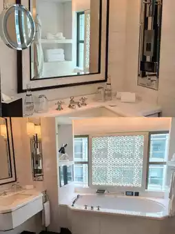 The rooms are large with a well-thought-out layout and elegant decor. The beds are incredibly comfortable, ensuring you wake up refreshed🛏️ The rooms have large floor-to-ceiling windows with stunning views overlooking all of Shanghai. By day, you see the bustling city; by night, the dazzling lights—every snapshot is picture-perfect. The bathrooms are made of marble with separate wet and dry areas and come equipped with a bathtub. After a long day, soaking in the tub is pure bliss.