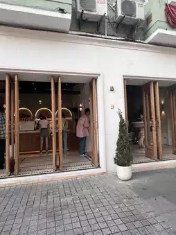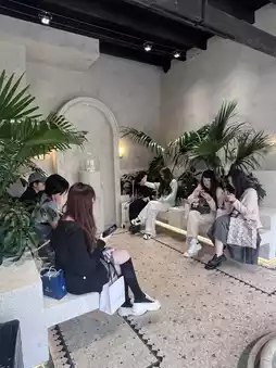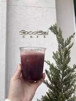 Next to the store is GOODBAI CAFÉ, which offers coffee and some light snacks. There is only a seating area for resting, with no tables for dining. Next to the café counter, there are also clothes and hats on display. The crowd here is a bit smaller than in the store.