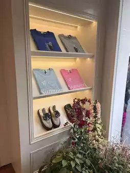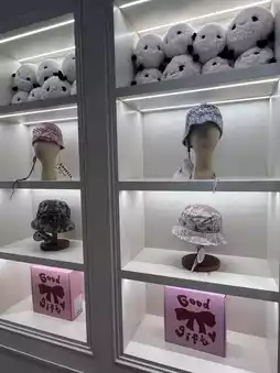 GOODBAI was established in 2021 by Bai Jingting and is located in Shanghai. Staff at the entrance control the number of people entering. On a holiday afternoon, the wait to get in is about ten minutes. They sell clothes, shoes, keychains, and dolls. Many of the keychains and dolls are already sold out. Overall, the style is quite cute.