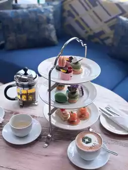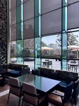 The Club Lounge is located on the 6th floor and opens from noon, offering afternoon tea and Happy Hour. Guests with Club Lounge privileges receive breakfast at the all-day dining restaurant. The indoor space is cleverly divided using sculptures and soft partitions into sofa areas, high table zones, and workspaces. There is also a large outdoor terrace.