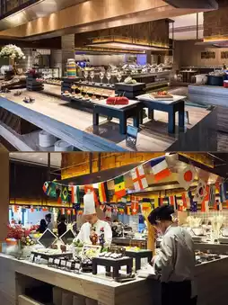 The hotel's dining services also left a deep impression on me. On the first floor, the interactive dining restaurant offered a dazzling array of Chinese and Western dishes and international cuisine. The hearty buffet breakfast included fresh fruits, delicious bread, nutritious porridge, and freshly made eggs and noodles with enticing aromas. Traditional Shanghai specialties and late-night snacks allowed me to savor authentic local flavors. The food bar was a great place for leisure and business gatherings; here, I could order a cup of coffee, enjoy snacks, and chat with friends in a very relaxed atmosphere. Especially notable were the hotel's all-day freshly brewed coffee self-service and the complimentary goodnight porridge in the evening, which warmed both my stomach and heart.