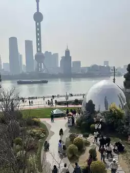 When you arrive, you will find the unique silver egg dome, a popular spot for taking photos. In addition, this area offers beautiful views of the Oriental Pearl Tower and other skyscrapers, perfect for capturing memorable shots.