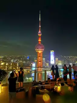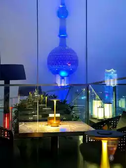 The best place to see the Oriental Pearl Tower~~"Flair Rooftop Bar" on the 58th floor to see the Oriental Pearl Tower up close