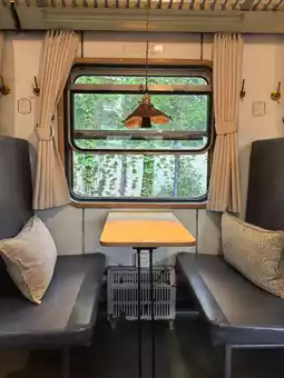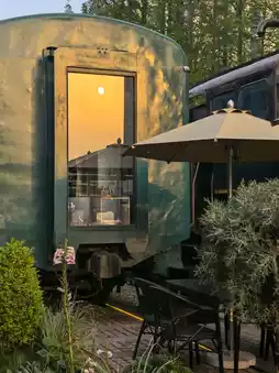And it even comes with a glass room next to it, probably a renovated old platform?