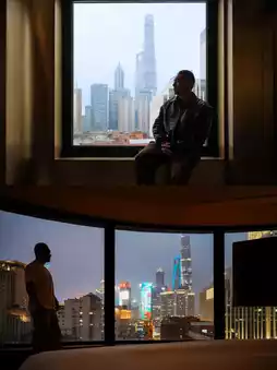 The moment you open the door, a flower wall splashes into view like ink, with antique bronze lines dancing under warm lighting. Though not a "luxury room" facing the Bund directly, the dialogue between Yuyuan’s red-tiled roofs and the glass curtain walls of skyscrapers outside the balcony perfectly embodies Magic City’s authentic "folded aesthetics"—the everyday and the glamorous separated only by the thickness of a floor-to-ceiling window.