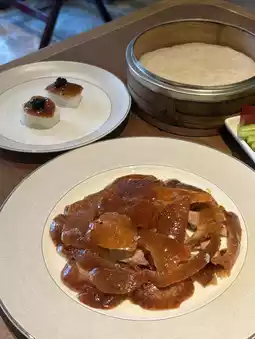 We ordered half Peking Duck, small Dongpo Pork, and fried rice!!