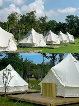 🏕️ The soft tent feels like a cloud, equipped with moisture-proof mats and sleeping bags!